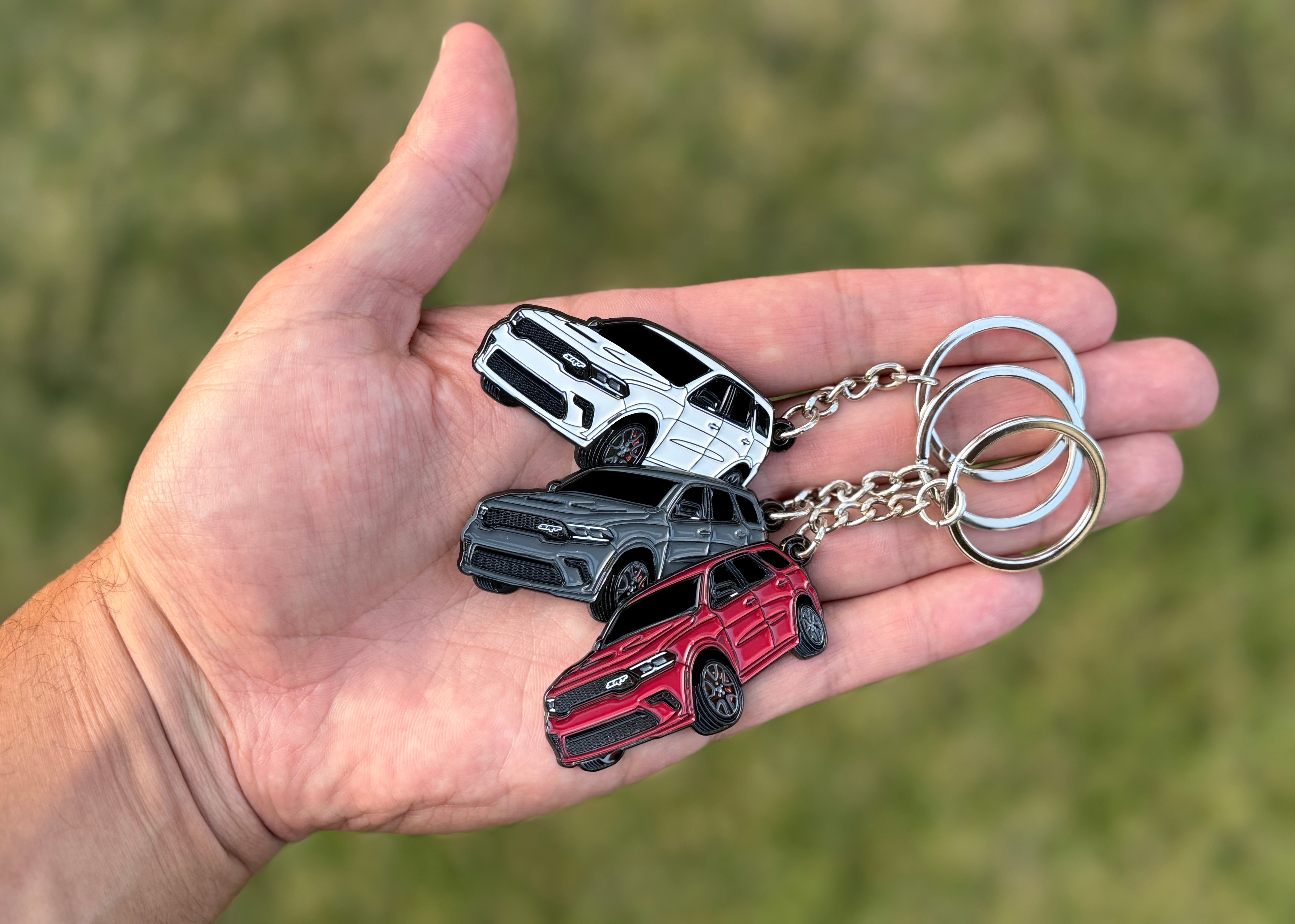 PREMIUM METAL / ENAMEL – Our Dodge keychain is made of durable metal with raised enamel detailing — smooth to touch and built tough like your Durango.